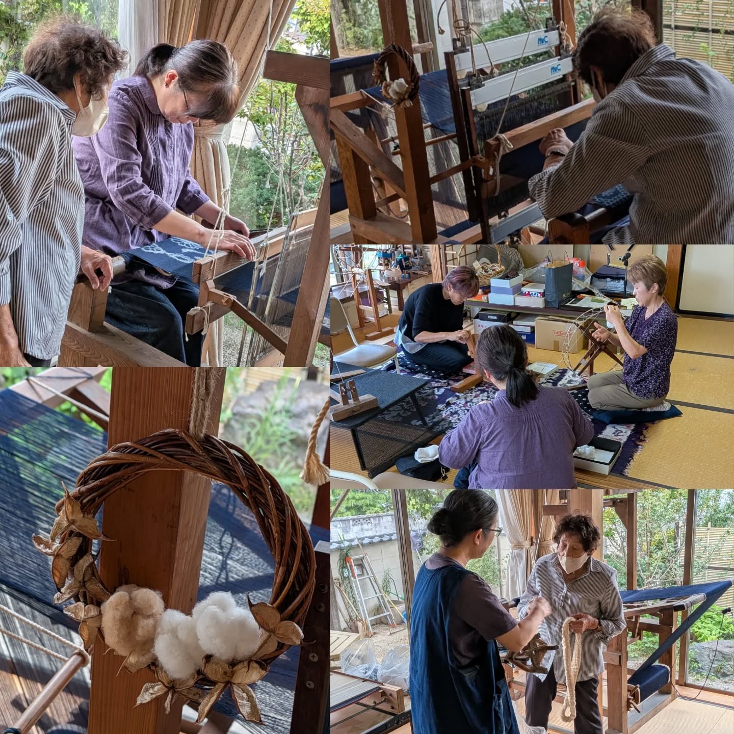 今日も素敵なお客様がお越しくださって、賑やかに楽しみました。綿繰り、綿打ち、糸紡ぎ、機織り。ご自宅で糸紡ぎをされている方もいらっしゃいます。草木染めもされますから、たくさんの美しい糸を拝見しました。絣の時間をきっかけに、それぞれの暮らしの中に生かすものを見つけてくださっていることが嬉しいです。
