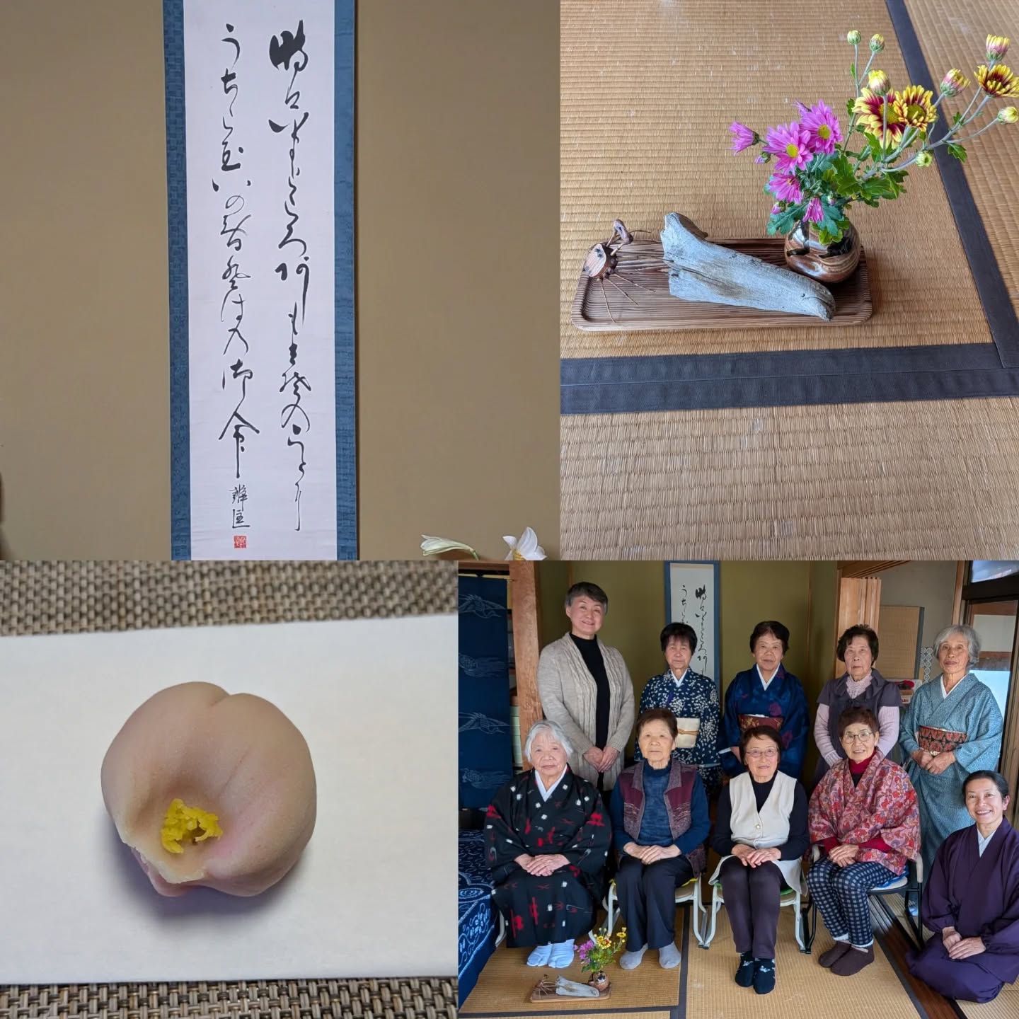 煎茶サロンでした。一煎のお茶をおいしく淹れようと懸命な姿には、胸が熱くなります。お客様も含めて皆さんが、心温かい煎茶席を作り上げてくださいました。本日も、ありがとうございました。お菓子は、菓子はな@kashihana.wagashi さんの「山茶花」。正客定めは、「菊痩蟹肥」でした。