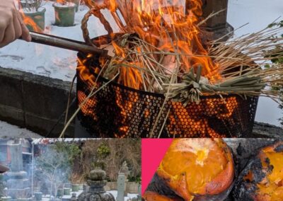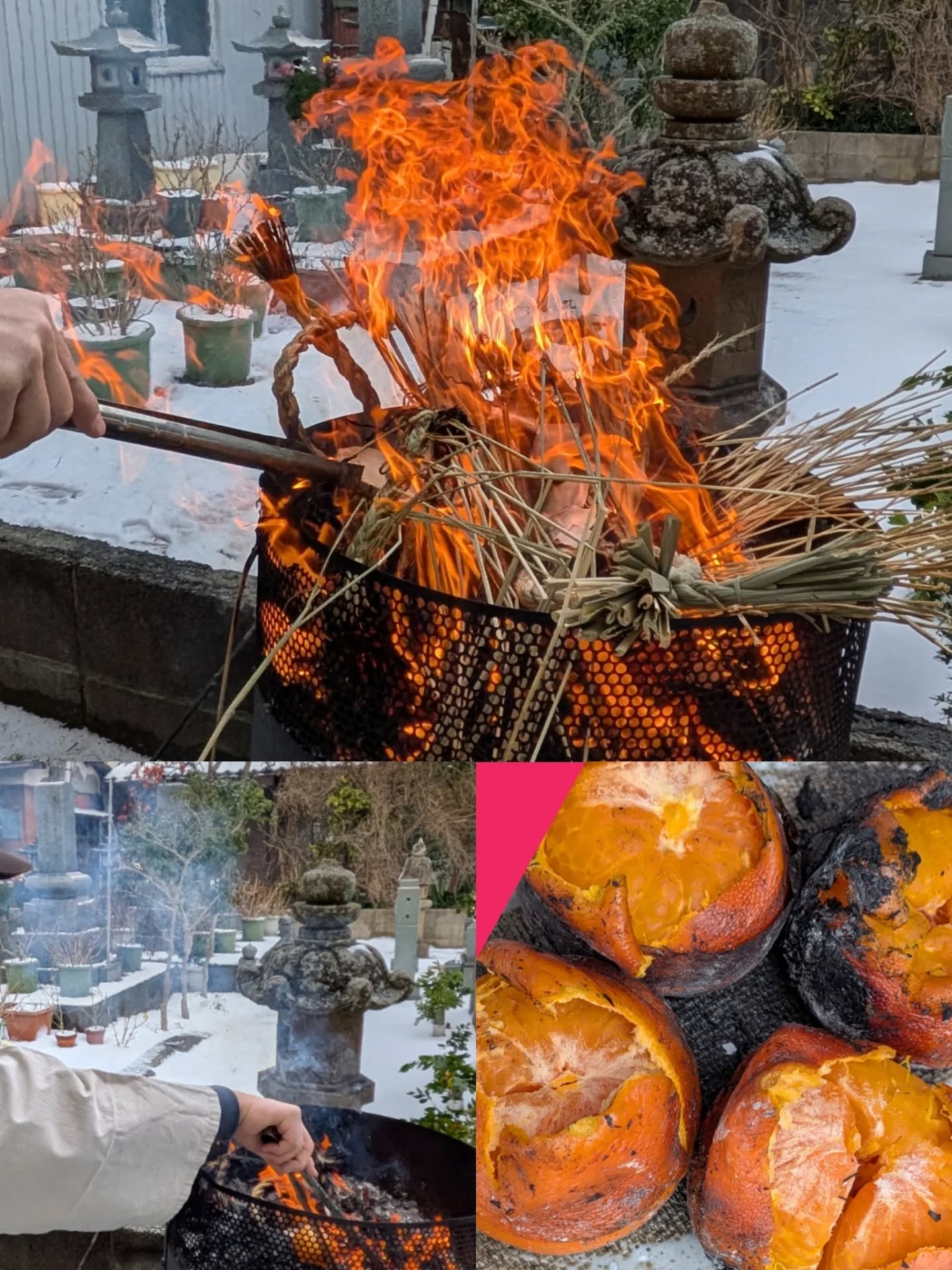 住職と副住職、寺庭婦人の3人で、お正月飾りをお焚き上げです。良い一年になりますように。