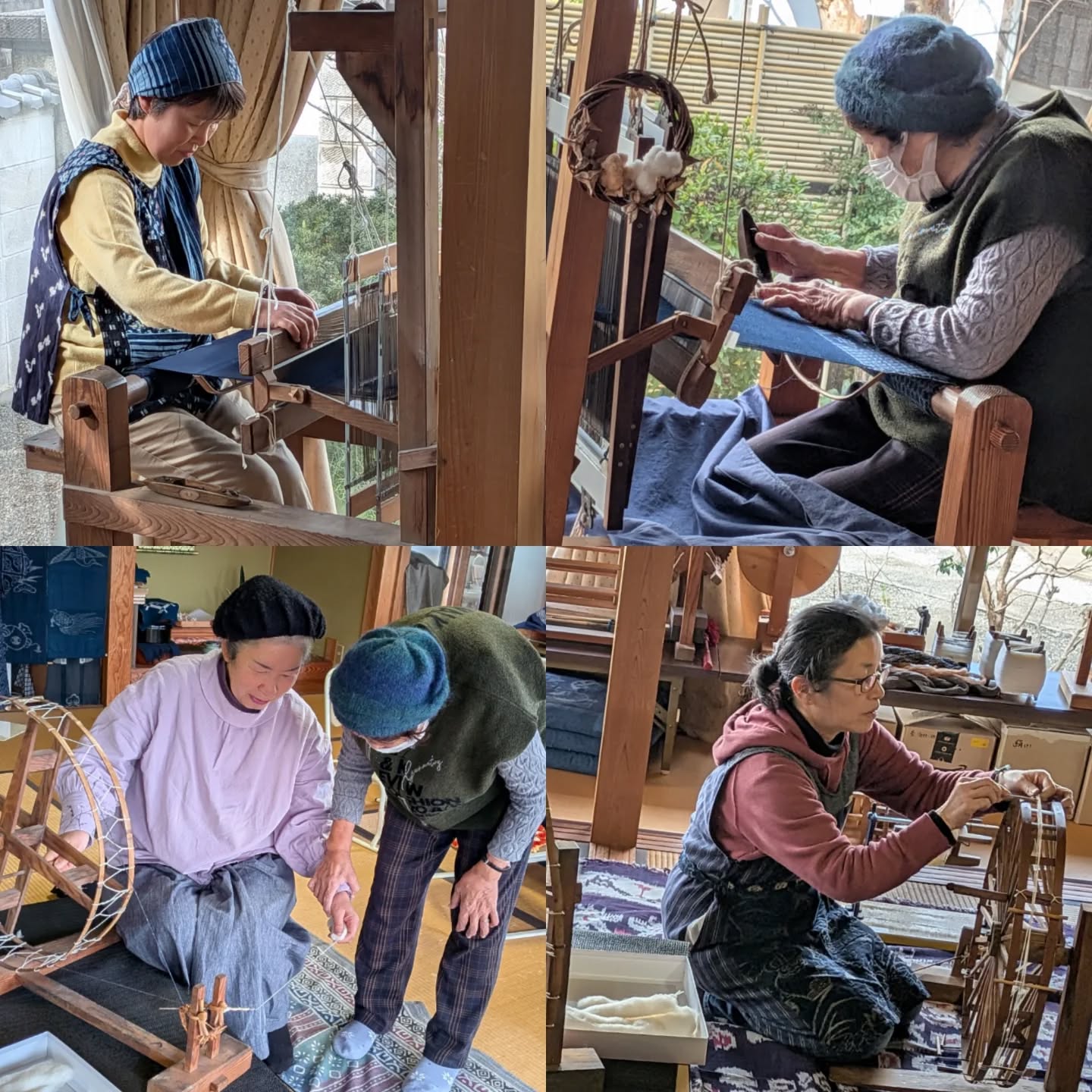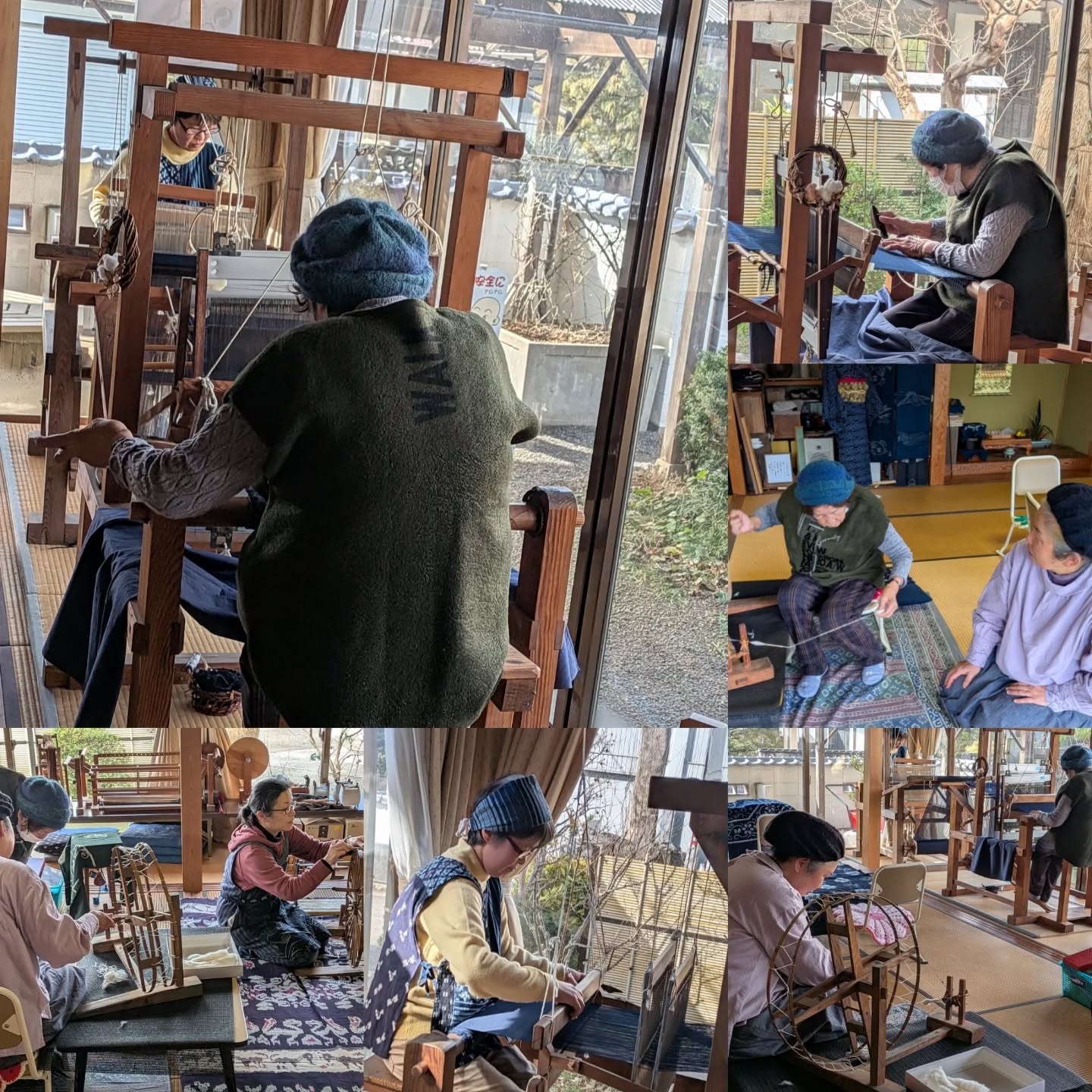 「絣の時間」でした。早朝の冷え込みから、日中だけは少し暖かくなりました。絣の時間は、機の音と笑い声が響いておりましたよ。糸紡ぎに、機織りに、それぞれやってみたいことに取り組みます。今日も楽しい時間を、ありがとうございました。