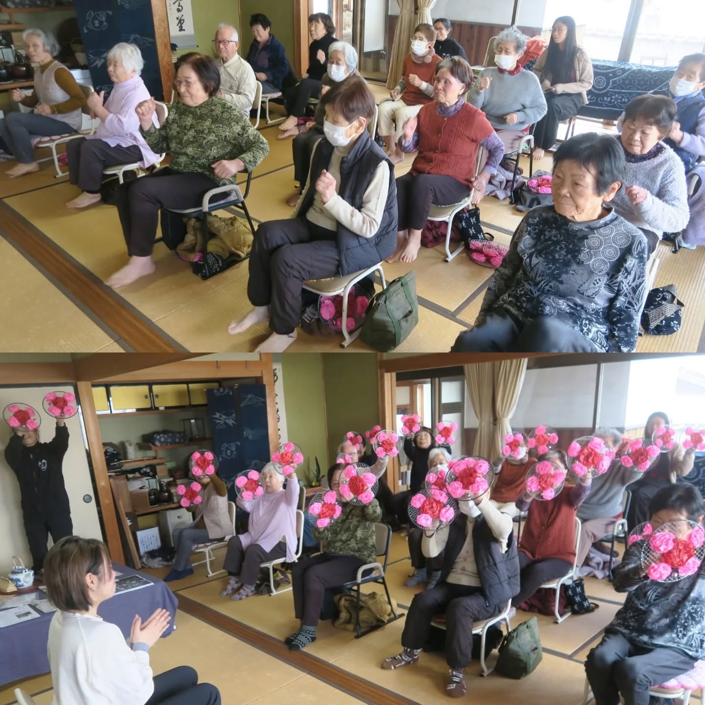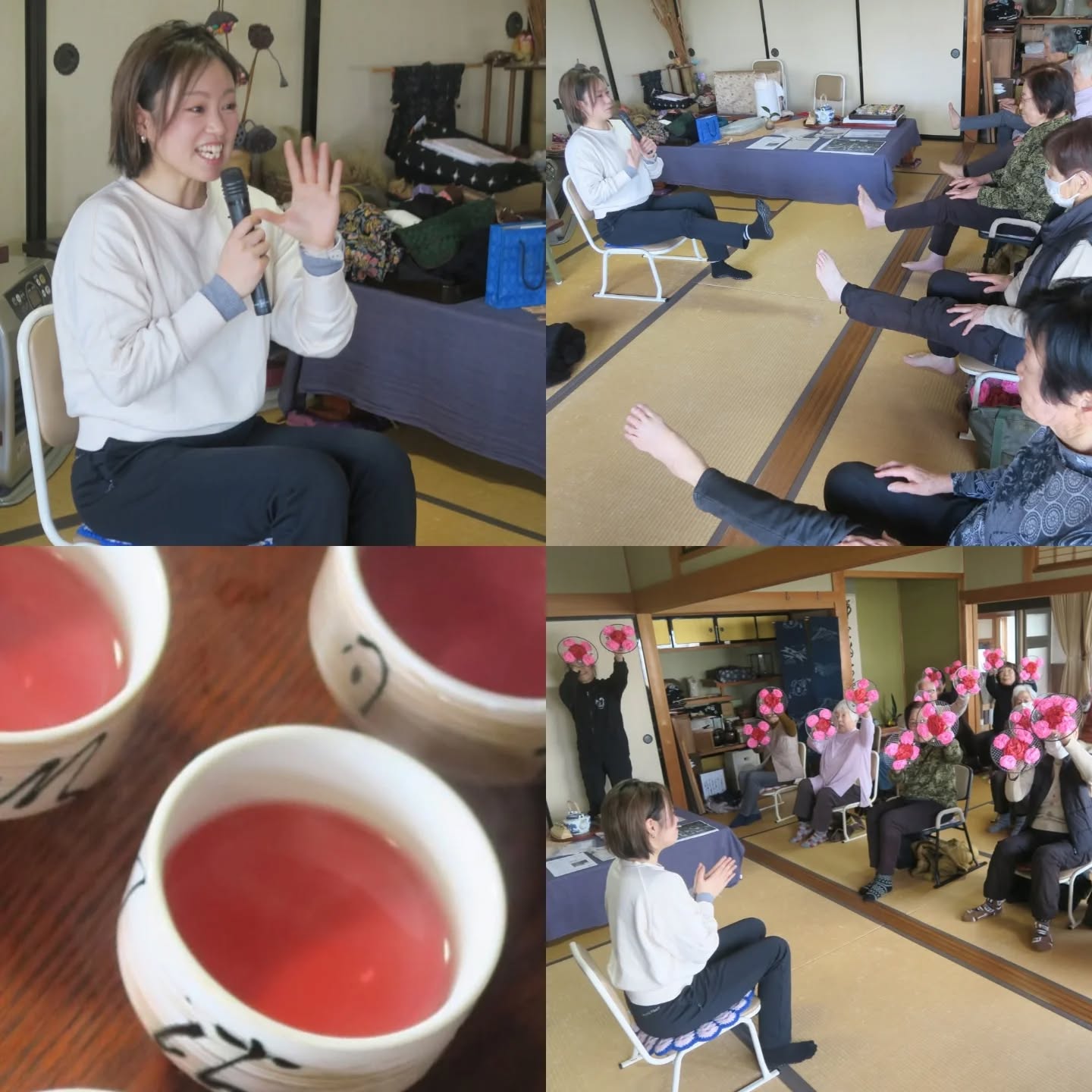 今日の寺子屋サロンは、Miho先生にお越しいただいて恒例の体ほぐし体操教室でした。新聞紙を使って足の指を動かすところから始まるのてすが、これがなかなか難しい!「出来なくても、しようとすることが大事」「やりにくくて地味な動きも、続けていると動くようになること」、また、ひとつひとつの動きの意味を解説してくださるので、頑張ることができます。足先手先を動かすことが、全身を動かすことになるのですね。1時間、筋肉を鍛える動きを楽しみのました