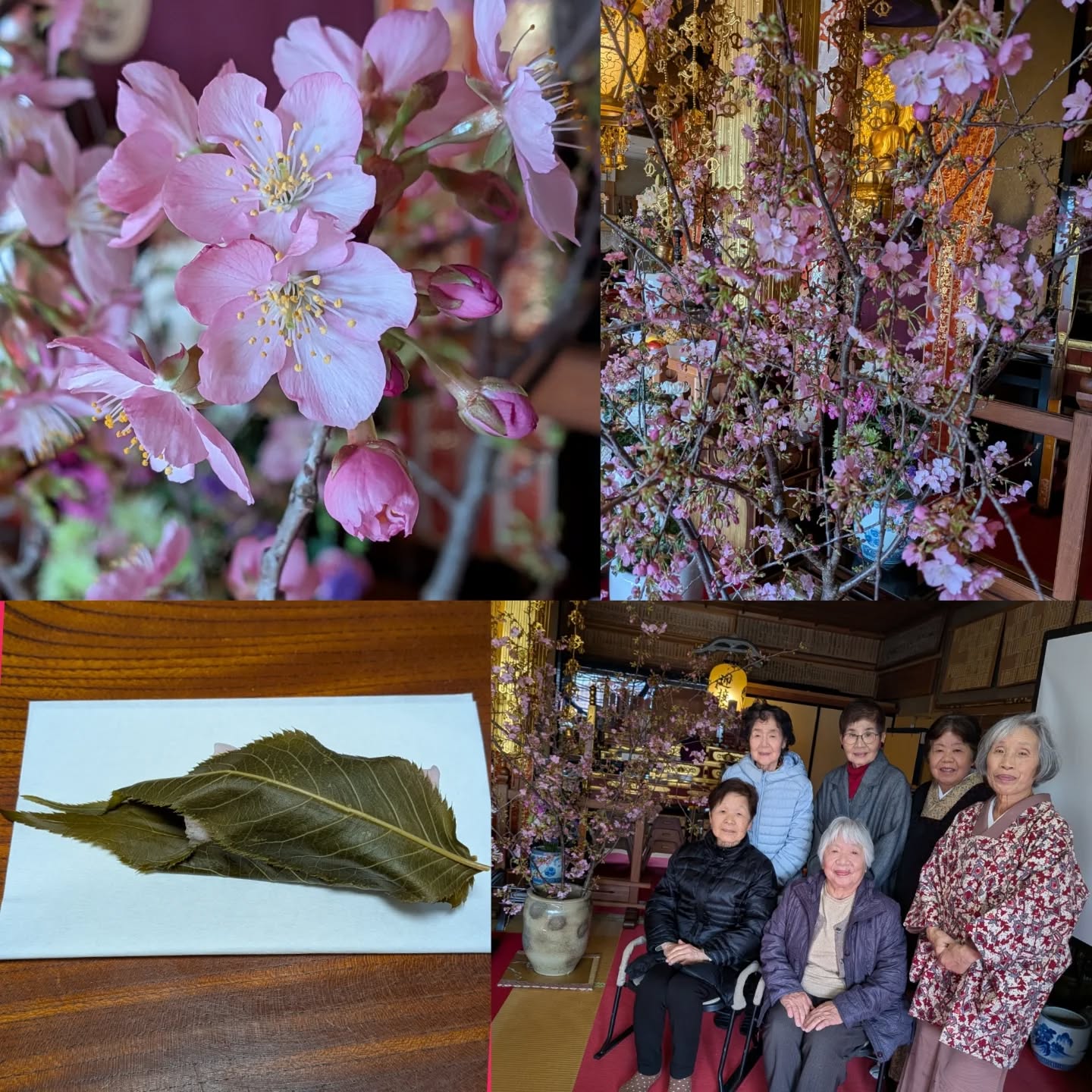 煎茶サロンお稽古会でした。1月2月と雪の為に中止が相次ぎ、今日から仕切り直しというところです。桃の節句を控えていますが、お菓子は、菓子はな(@kashihana.wagashi )さんの桜もち。とても美味しくて、写真でお伝えできないのをもどかしく思います。久しぶりに、皆さんがお点前の稽古でした。玉露と桜もちで、和やかなひとときを楽しみましたよ。ご本堂の河津桜も開花が始まり、ハイポーズ!