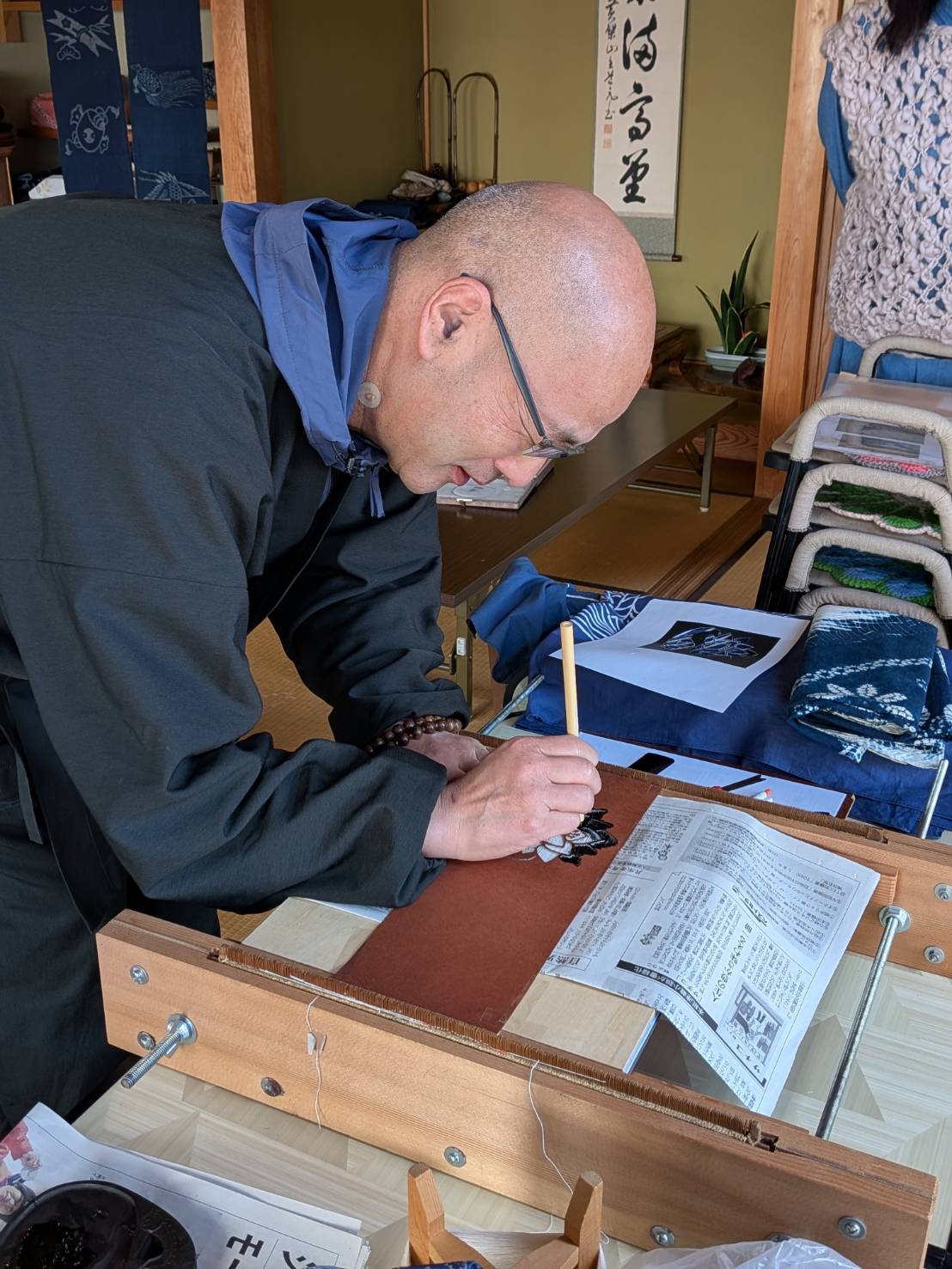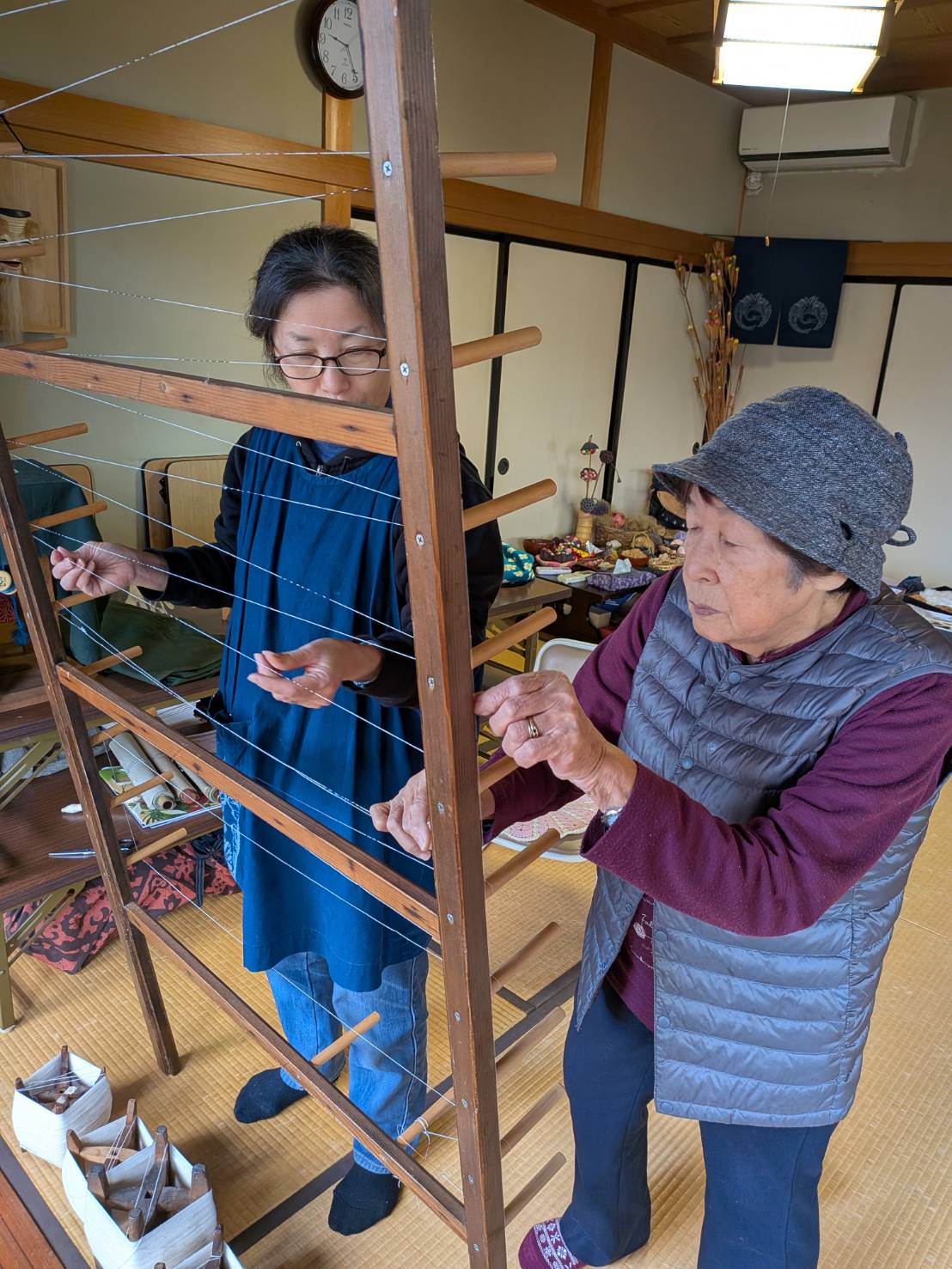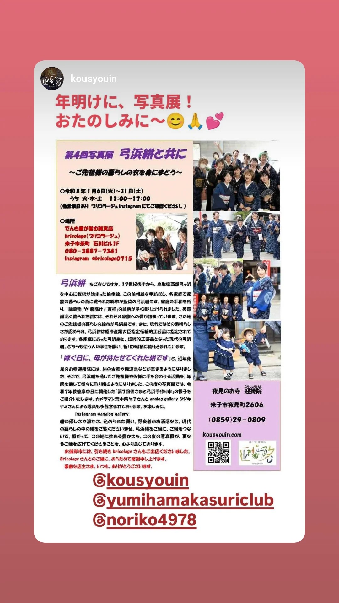 近年お寺に弓浜絣の古着が集ってまいりました。「弓浜絣を着て、写経がしてみたいです」とか「弓浜絣を着てみたいです」「弓浜絣を着て婚姻届けを出しに行きたいです」など、ご要望にご協力させていただいております。また、お寺で機織り体験も可能です。お気軽にお問い合わせください。